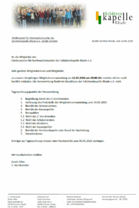 Herzliche Einladung zur Jahreshauptversammlung des Fördervereins. Die diesjährige Sitzung findet am 12.05.2026 um 20 Uhr im Musikhaus statt.